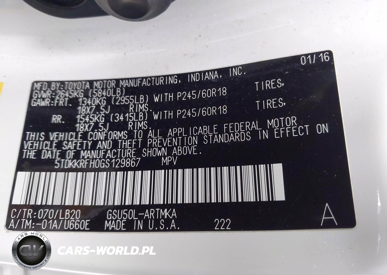 IAAI Nr: I-43999331 VIN: 5TDKKRFH0GS129867 Port: Los Angeles, CA