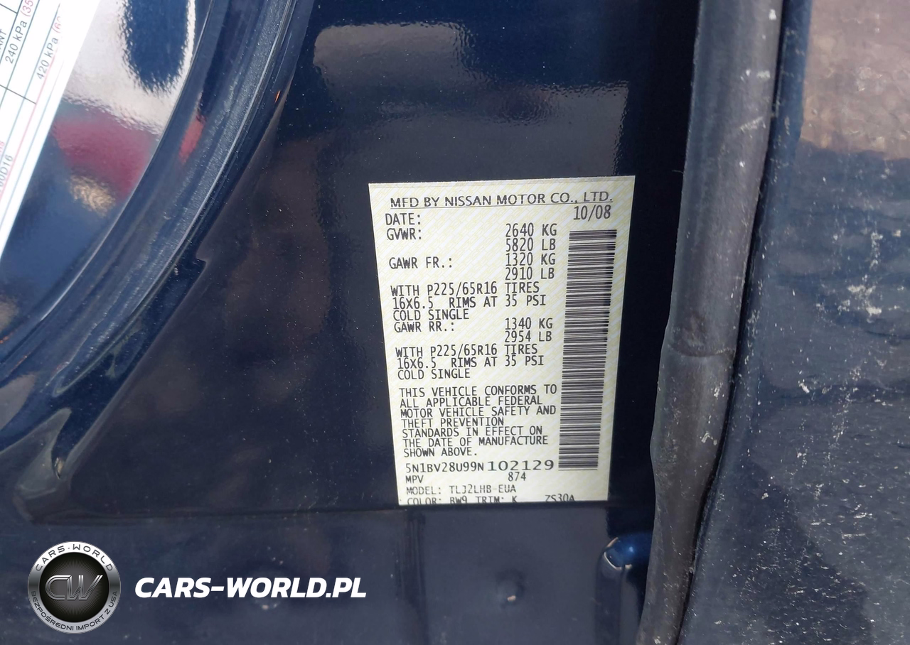 IAAI Nr: I-44001622 VIN: 5N1BV28U99N102129 Port: Elizabeth, NJ