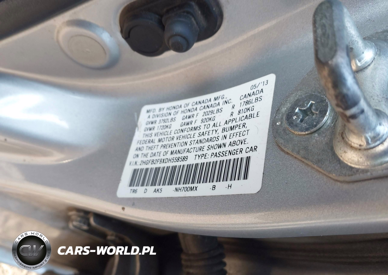IAAI Nr: I-44008522 VIN: 2HGFB2F9XDH558589 Port: Savannah, GA