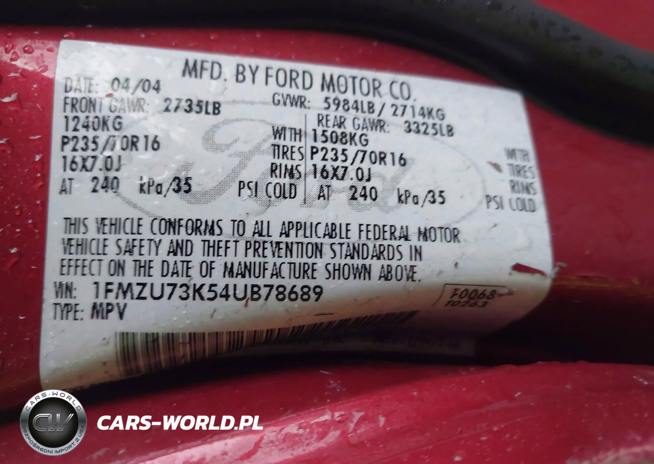 IAAI Nr: I-44010979 VIN: 1FMZU73K54UB78689 Port: Los Angeles, CA