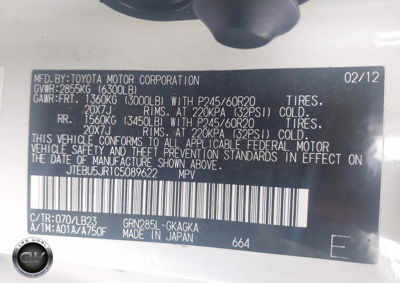 IAAI Nr: I-44019865 VIN: JTEBU5JR1C5089622 Port: Savannah, GA