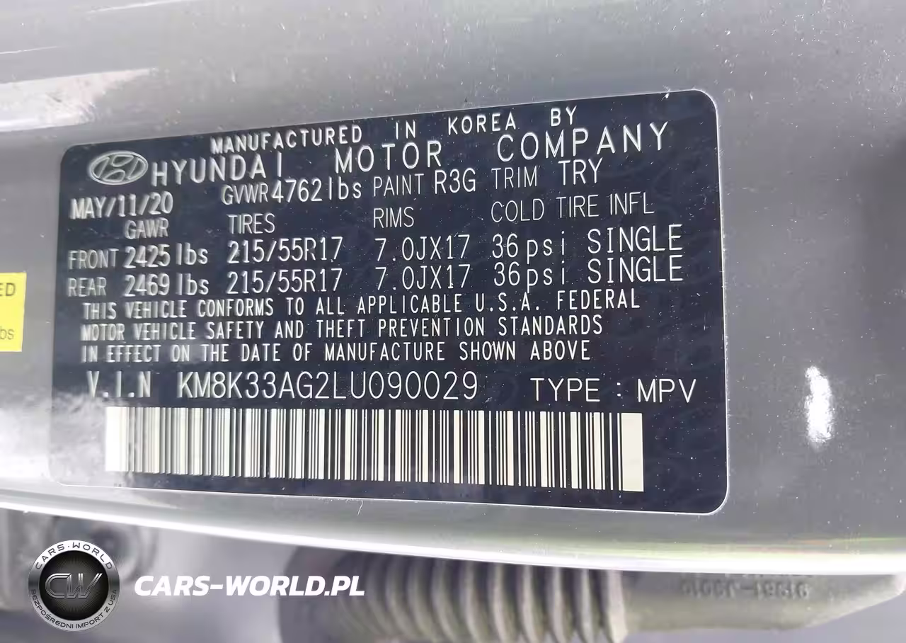 IAAI Nr: I-44020422 VIN: KM8K33AG2LU090029 Port: Indianapolis, IN