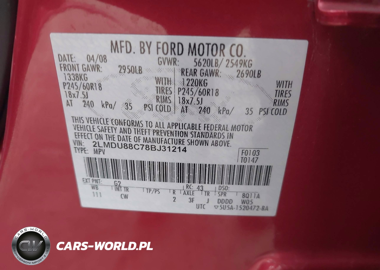 IAAI Nr: I-44034489 VIN: 2LMDU88C78BJ31214 Port: Elizabeth, NJ