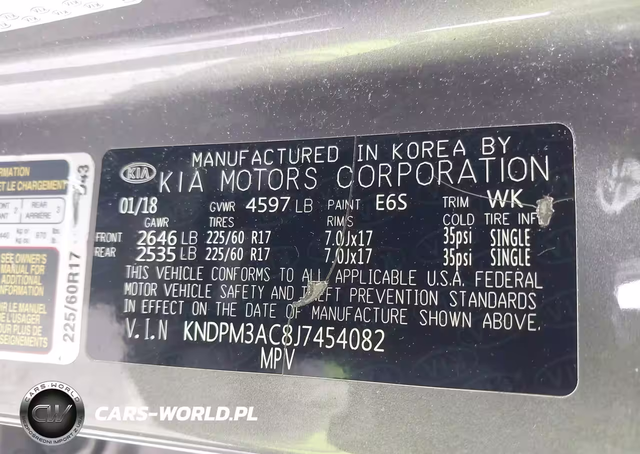 IAAI Nr: I-44035157 VIN: KNDPM3AC8J7454082 Port: Savannah, GA
