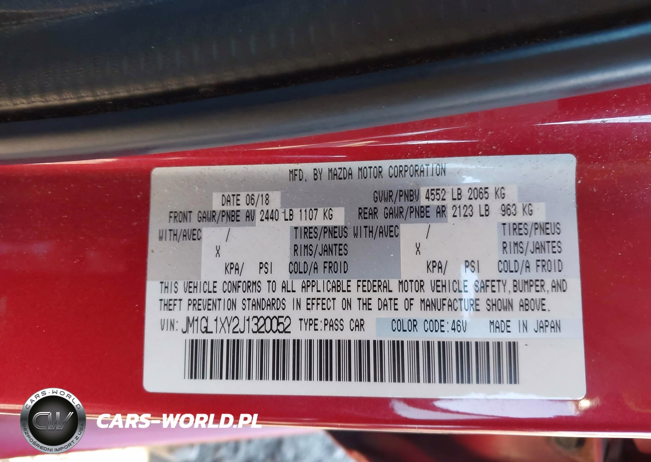 IAAI Nr: I-44036177 VIN: JM1GL1XY2J1320052 Port: Savannah, GA