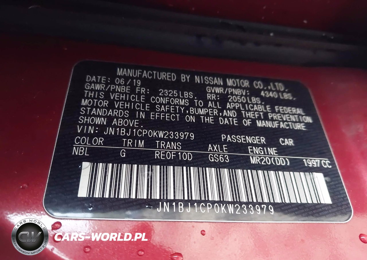 IAAI Nr: I-44036738 VIN: JN1BJ1CP0KW233979 Port: Savannah, GA