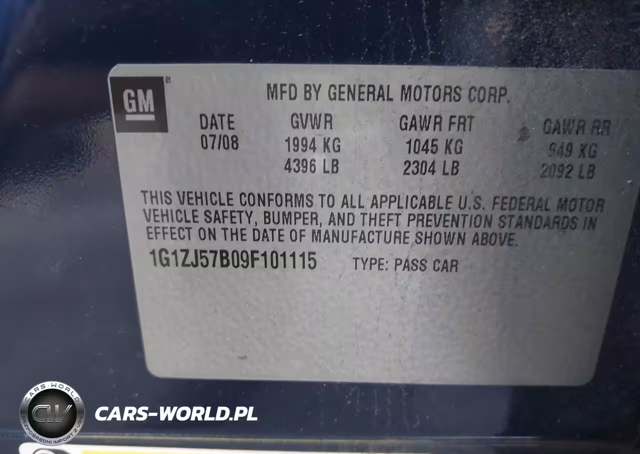 IAAI Nr: I-44041672 VIN: 1G1ZJ57B09F101115 Port: Savannah, GA