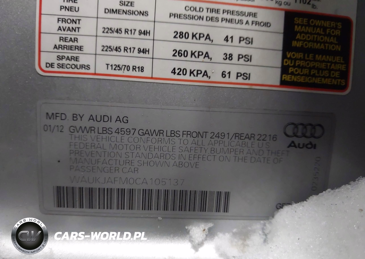 IAAI Nr: I-44047253 VIN: WAUKJAFM0CA105137 Port: Indianapolis, IN