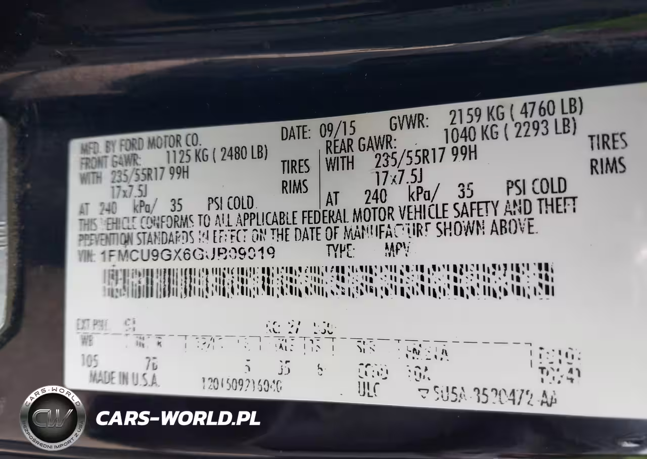 IAAI Nr: I-44051980 VIN: 1FMCU9GX6GUB09019 Port: Indianapolis, IN