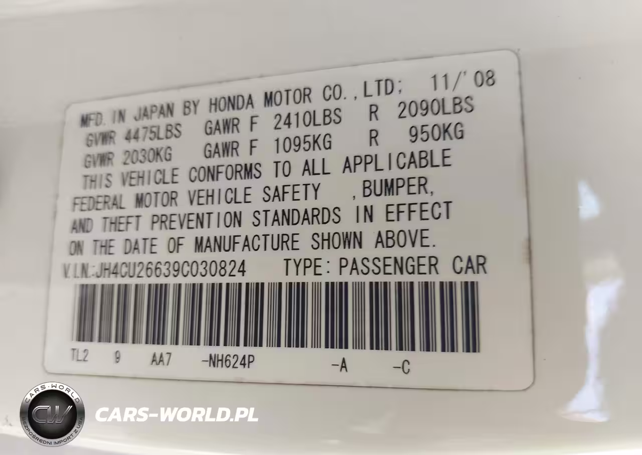 IAAI Nr: I-44054496 VIN: JH4CU26639C030824 Port: Elizabeth, NJ