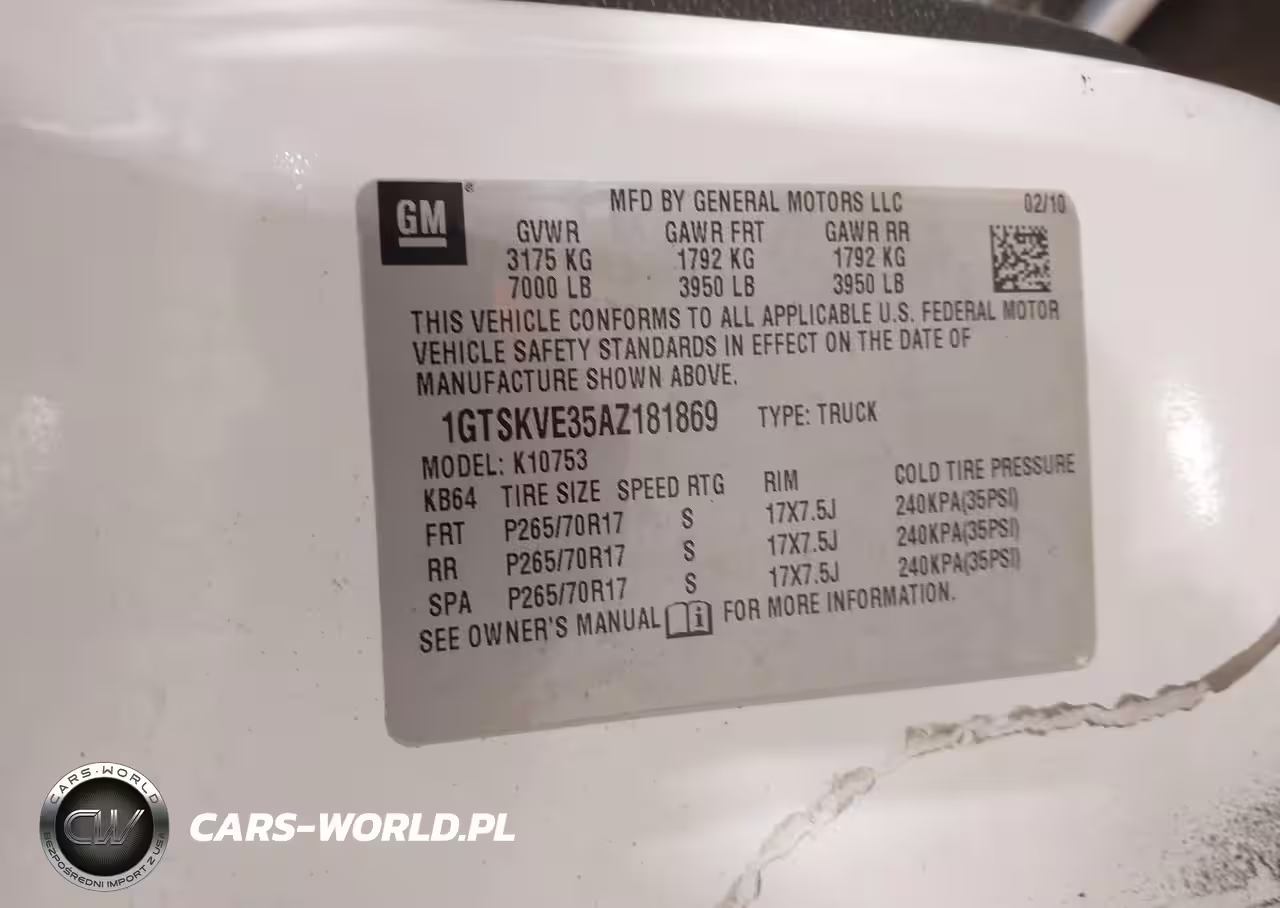 IAAI Nr: I-44054695 VIN: 1GTSKVE35AZ181869 Port: Indianapolis, IN
