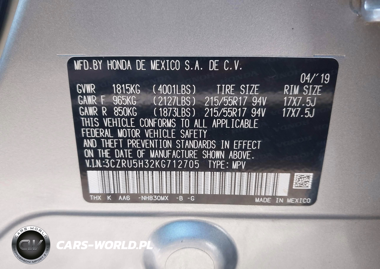 IAAI Nr: I-44064901 VIN: 3CZRU5H32KG712705 Port: Savannah, GA