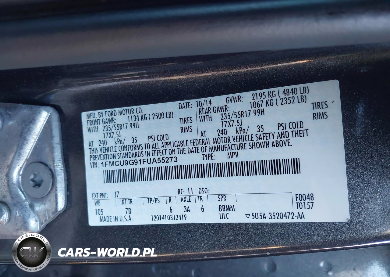 IAAI Nr: I-44068681 VIN: 1FMCU9G91FUA55273 Port: Elizabeth, NJ