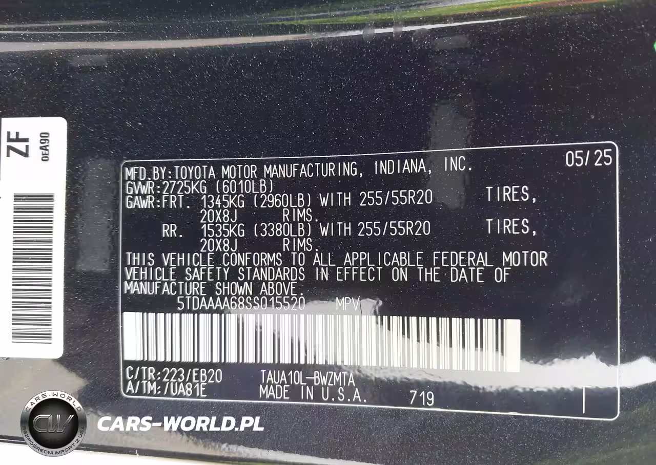 IAAI Nr: I-44072797 VIN: 5TDAAAA68SS015520 Port: Houston, TX