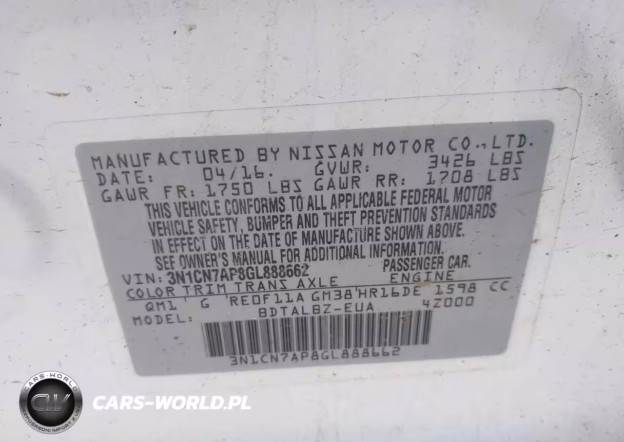 IAAI Nr: I-44075545 VIN: 3N1CN7AP8GL888662 Port: Indianapolis, IN