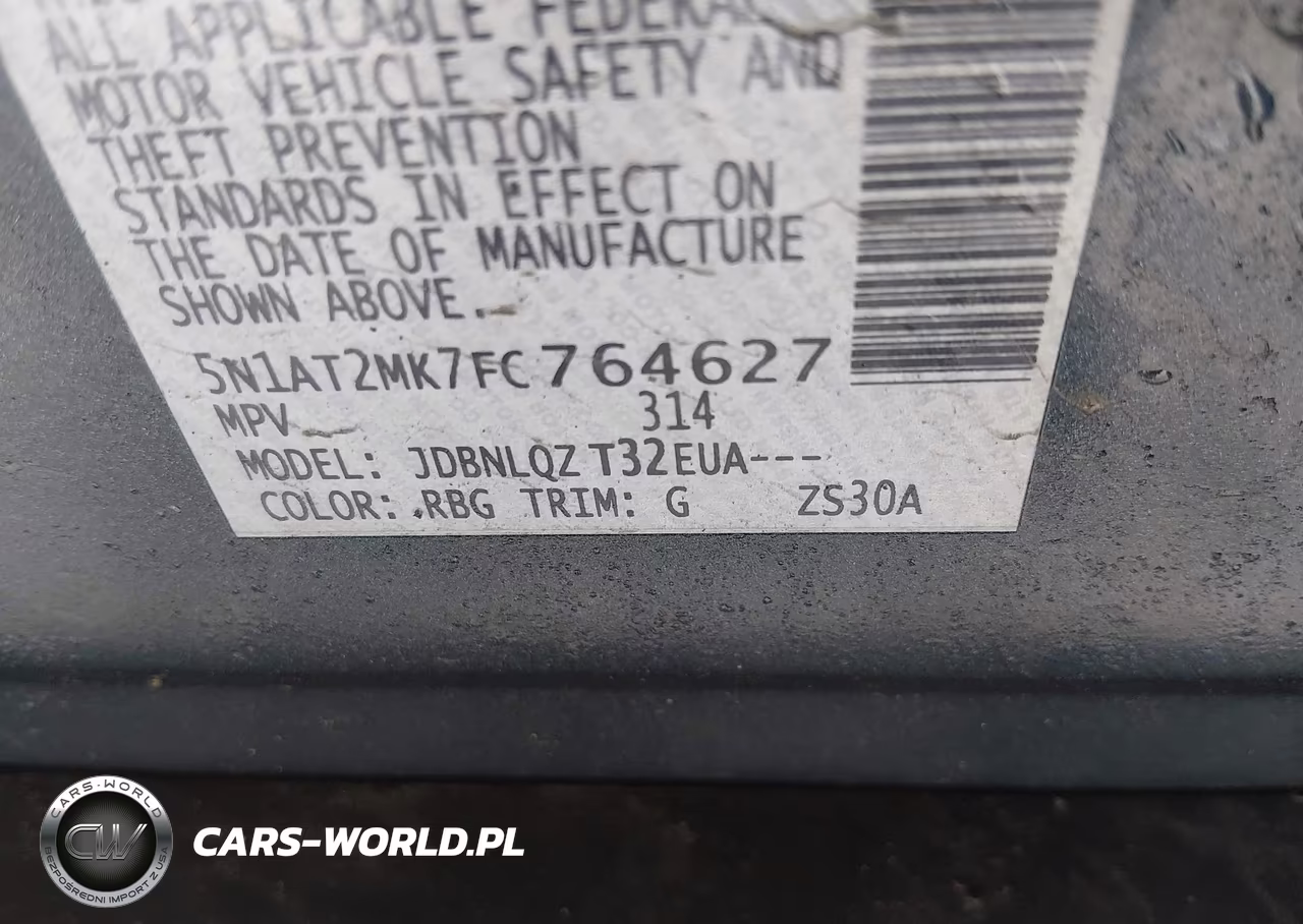 IAAI Nr: I-44088635 VIN: 5N1AT2MK7FC764627 Port: Elizabeth, NJ