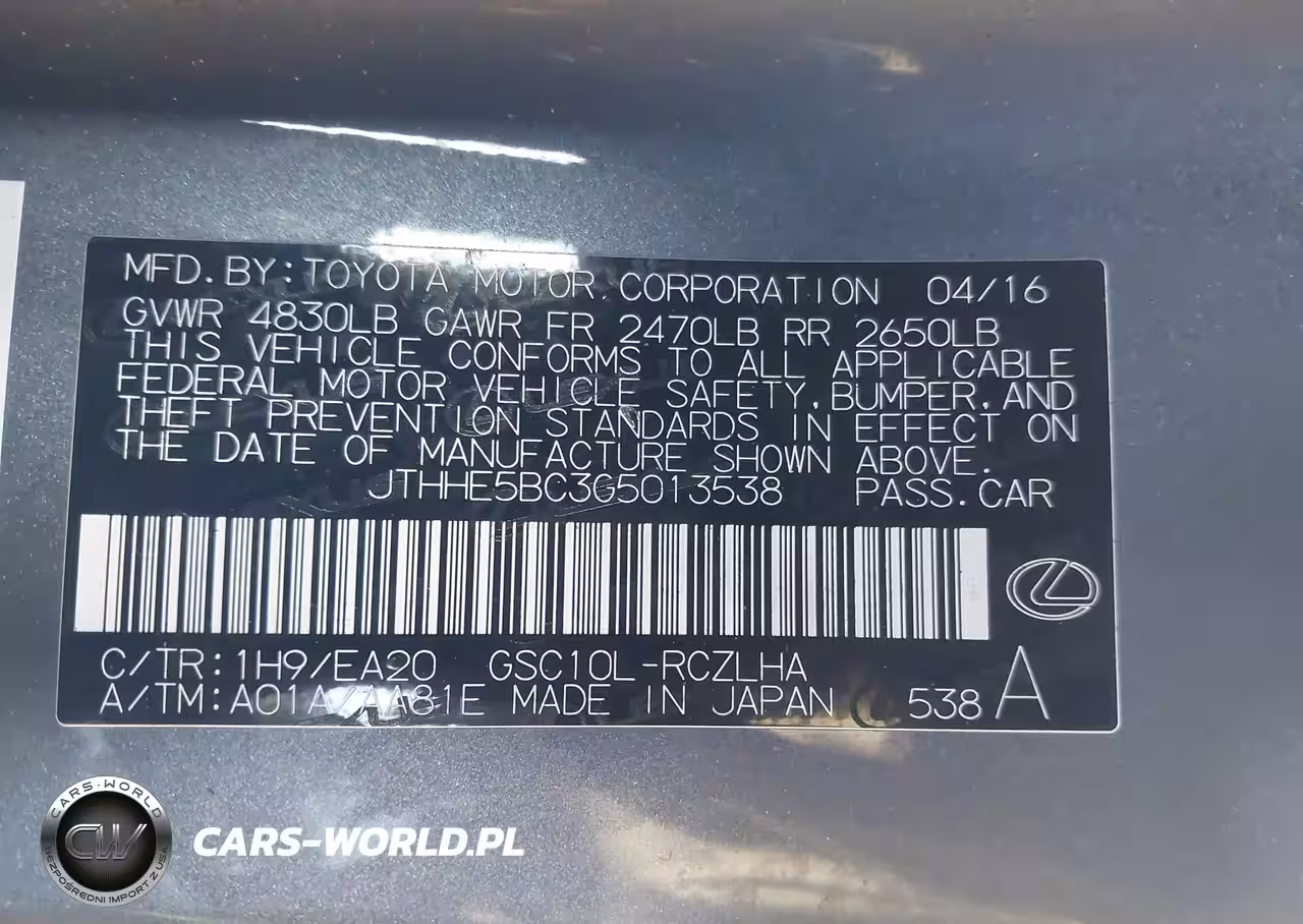 IAAI Nr: I-44092290 VIN: JTHHE5BC3G5013538 Port: Los Angeles, CA