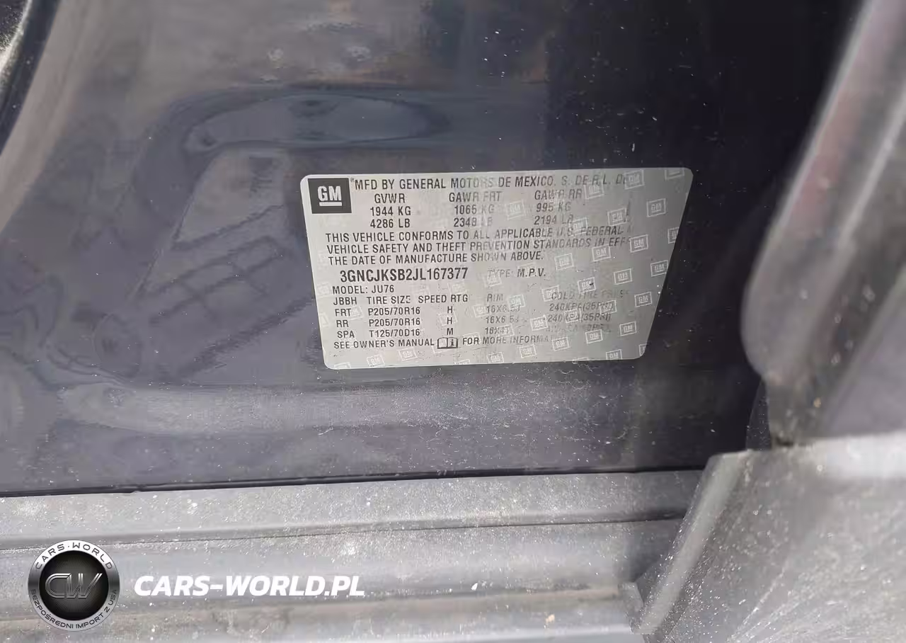 IAAI Nr: I-44099942 VIN: 3GNCJKSB2JL167377 Port: Savannah, GA