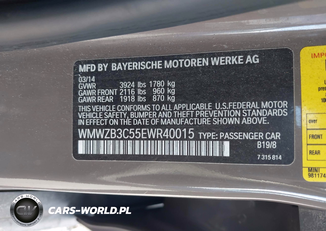 IAAI Nr: I-44099955 VIN: WMWZB3C55EWR40015 Port: Savannah, GA