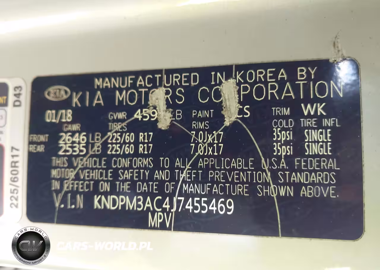 IAAI Nr: I-44102152 VIN: KNDPM3AC4J7455469 Port: Savannah, GA