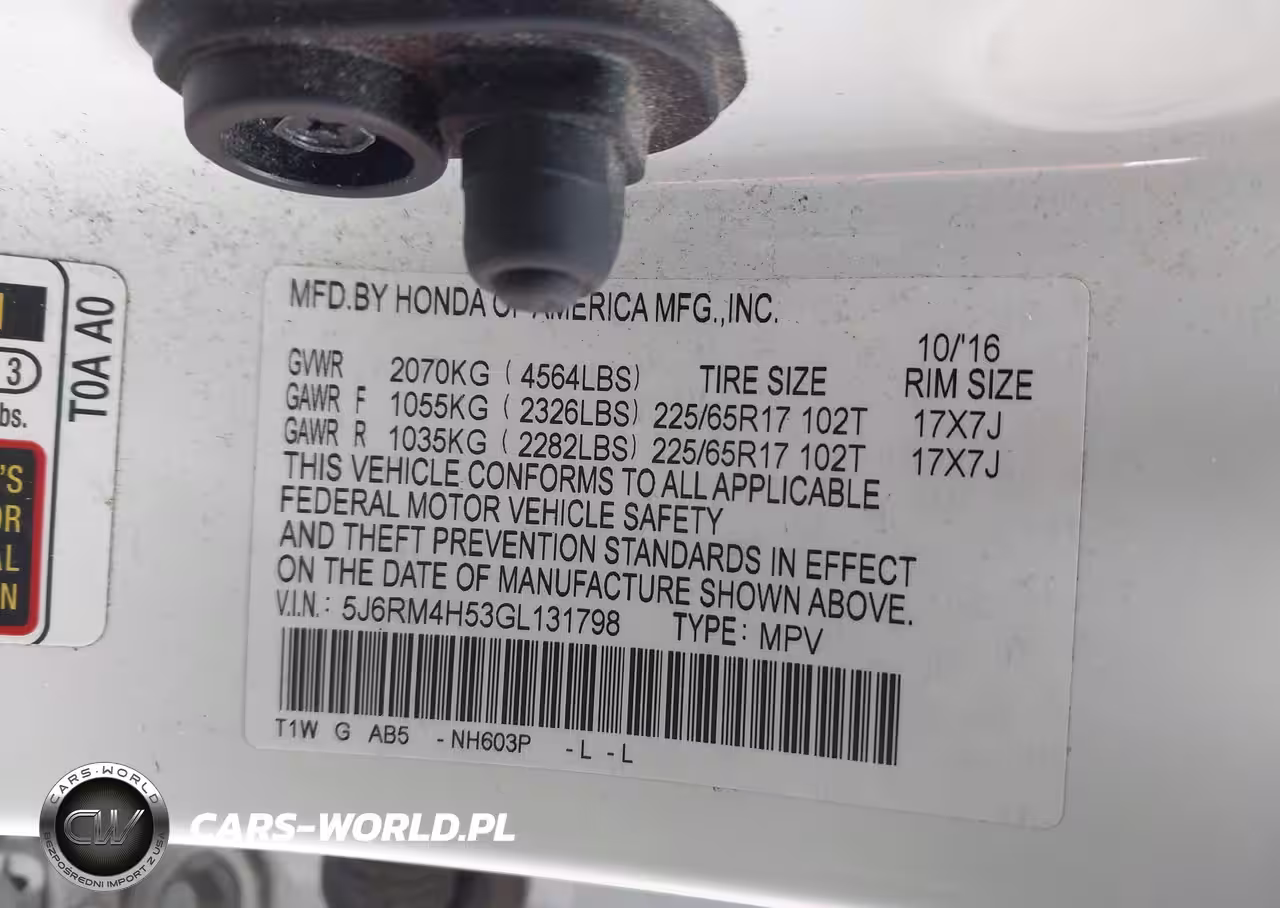 IAAI Nr: I-44106007 VIN: 5J6RM4H53GL131798 Port: Indianapolis, IN