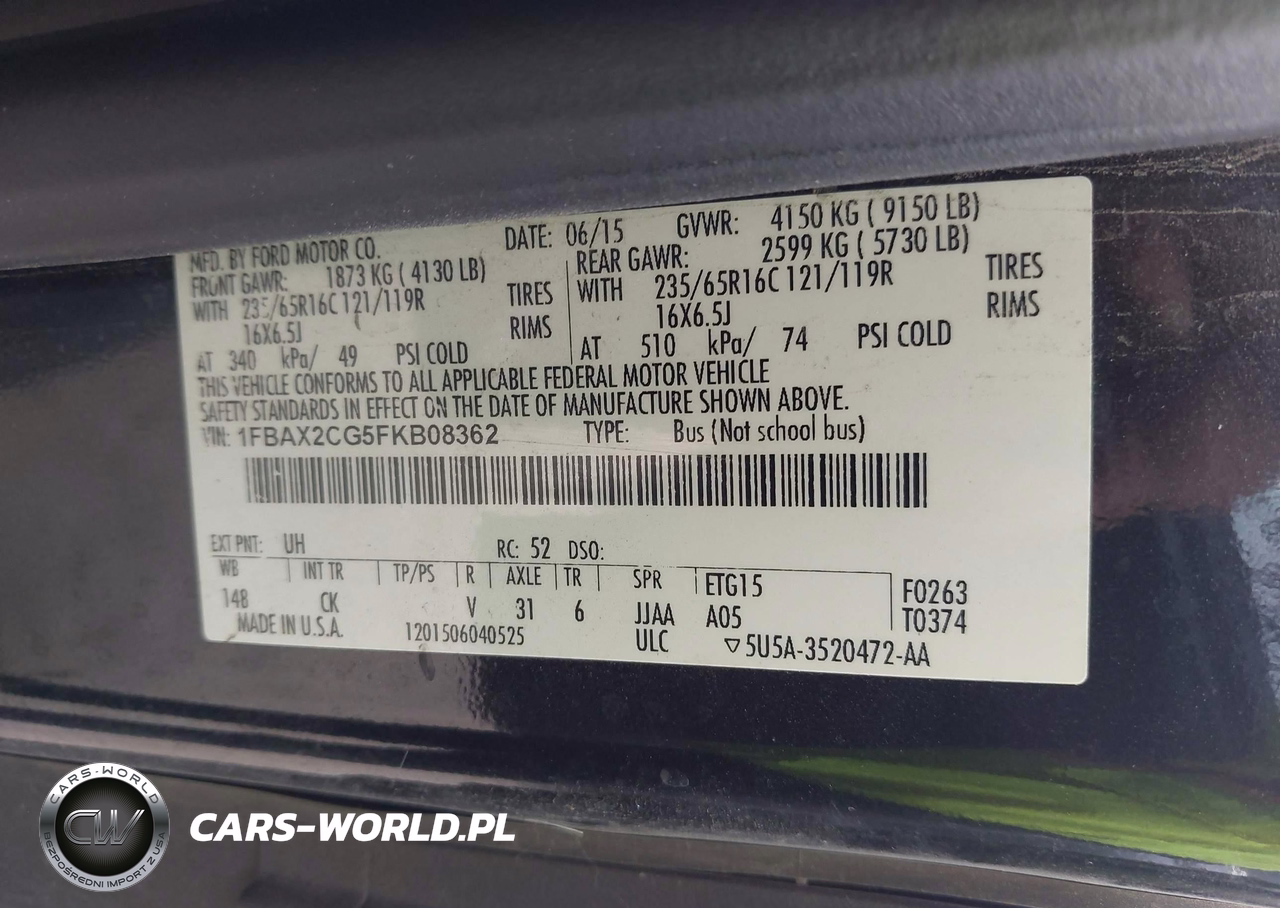 IAAI Nr: I-44106432 VIN: 1FBAX2CG5FKB08362 Port: Houston, TX