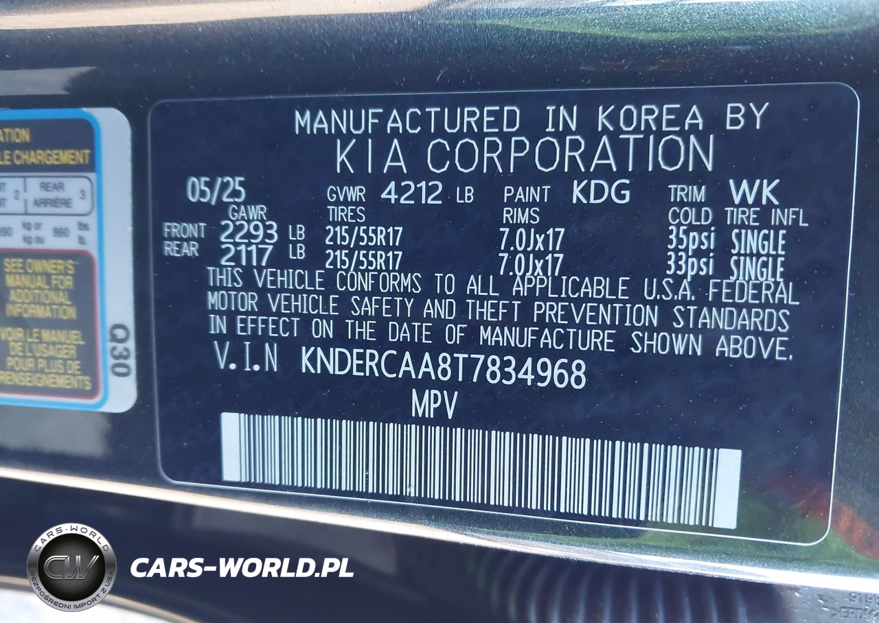 IAAI Nr: I-44110176 VIN: KNDERCAA8T7834968 Port: Elizabeth, NJ