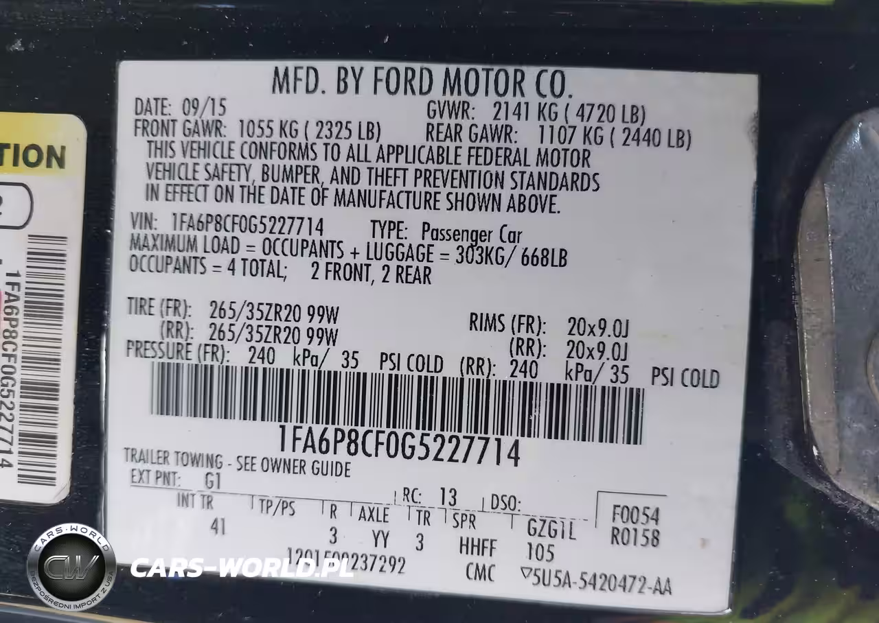 IAAI Nr: I-44111435 VIN: 1FA6P8CF0G5227714 Port: Elizabeth, NJ
