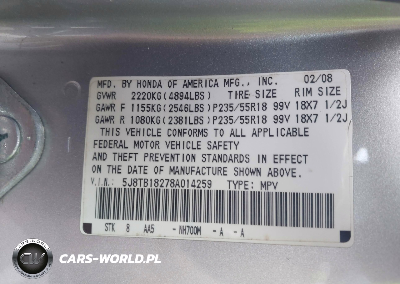 IAAI Nr: I-44114194 VIN: 5J8TB18278A014259 Port: Savannah, GA