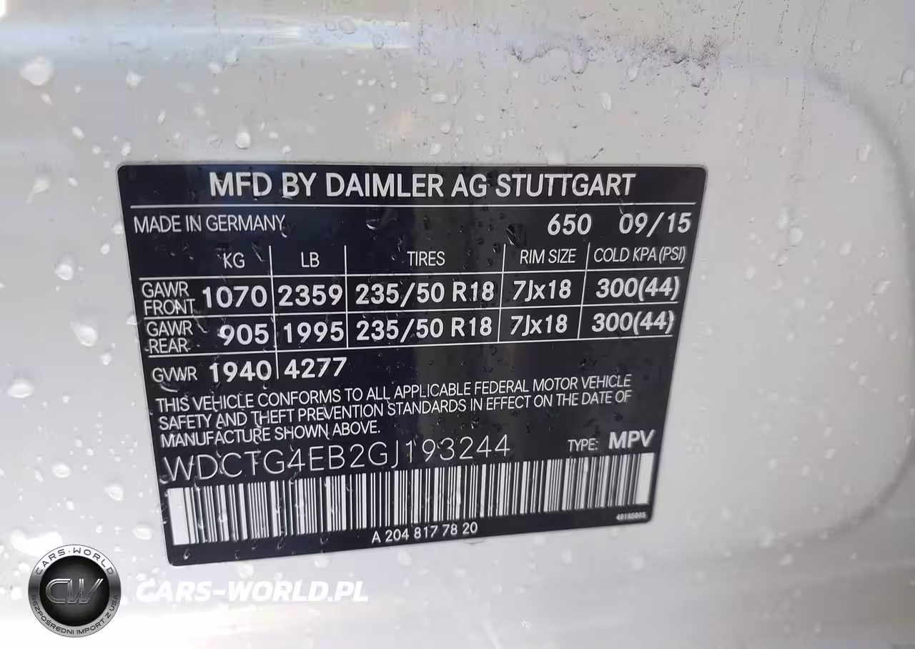 IAAI Nr: I-44115311 VIN: WDCTG4EB2GJ193244 Port: Los Angeles, CA