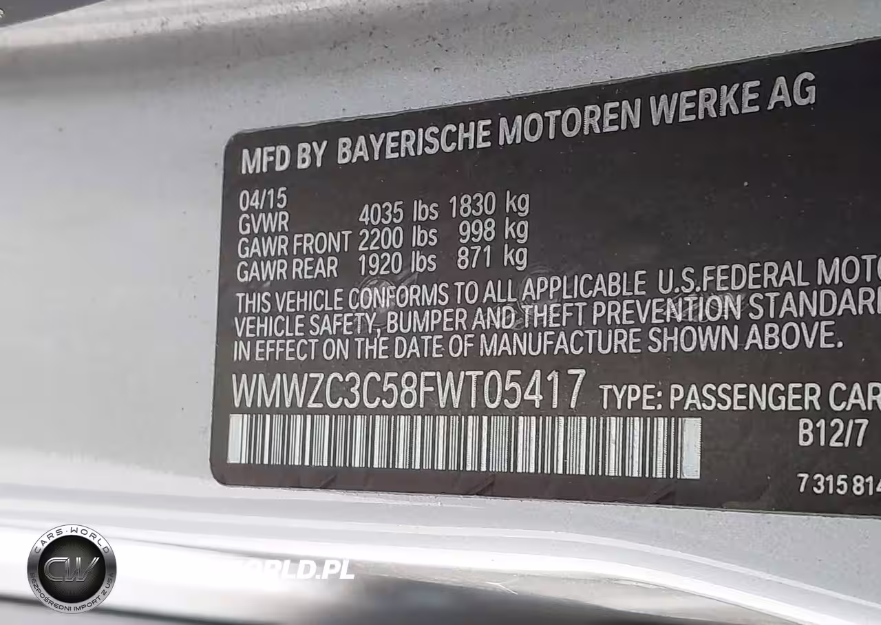 IAAI Nr: I-44118148 VIN: WMWZC3C58FWT05417 Port: Houston, TX