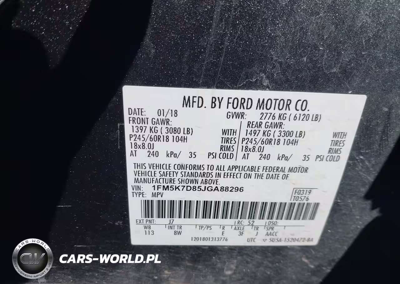 IAAI Nr: I-44126091 VIN: 1FM5K7D85JGA88296 Port: Houston, TX