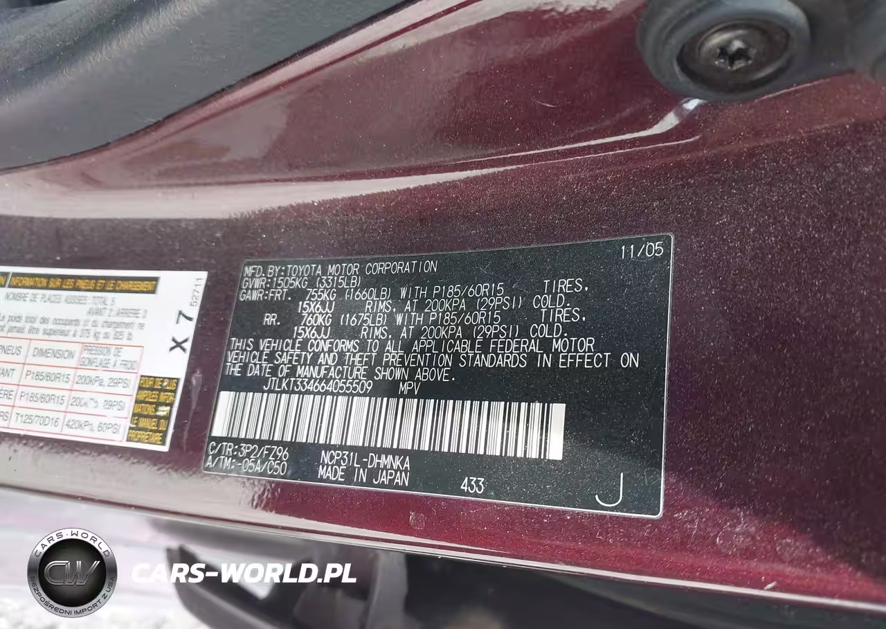 IAAI Nr: I-44126837 VIN: JTLKT334664055509 Port: Houston, TX