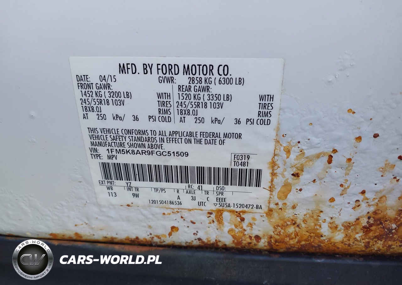 IAAI Nr: I-44127241 VIN: 1FM5K8AR9FGC51509 Port: Indianapolis, IN