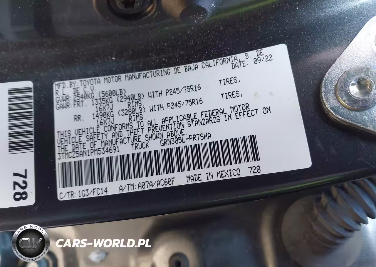 IAAI Nr: I-44134500 VIN: 3TMCZ5AN1PM534691 Port: Elizabeth, NJ