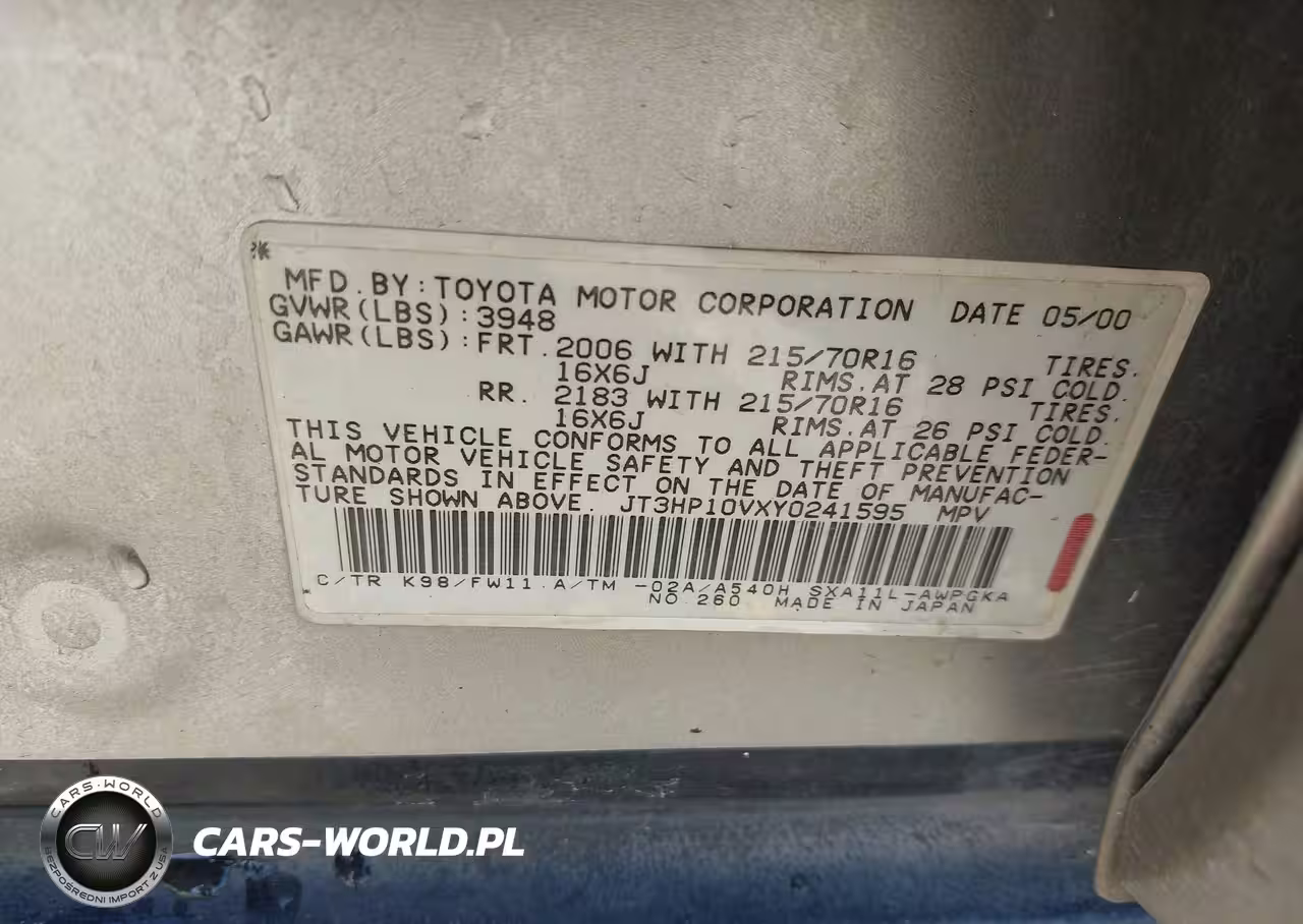 IAAI Nr: I-44140476 VIN: JT3HP10VXY0241595 Port: Los Angeles, CA