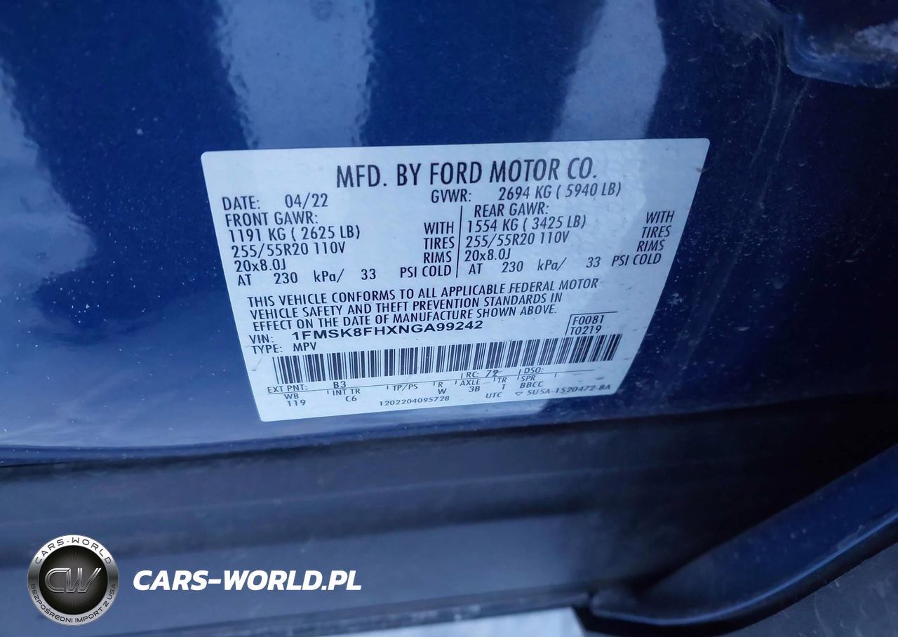 IAAI Nr: I-44147771 VIN: 1FMSK8FHXNGA99242 Port: Indianapolis, IN