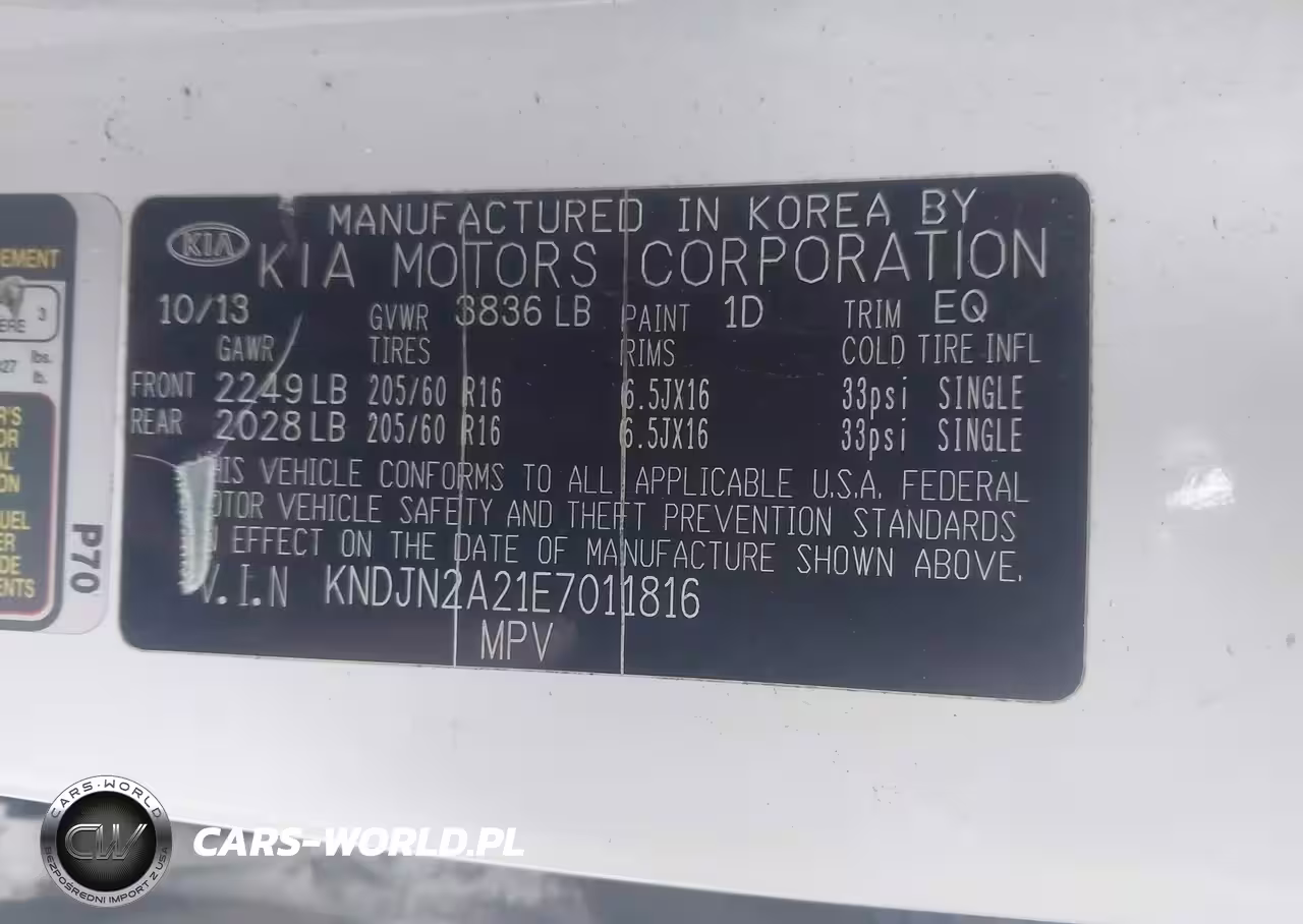IAAI Nr: I-44150277 VIN: KNDJN2A21E7011816 Port: Elizabeth, NJ