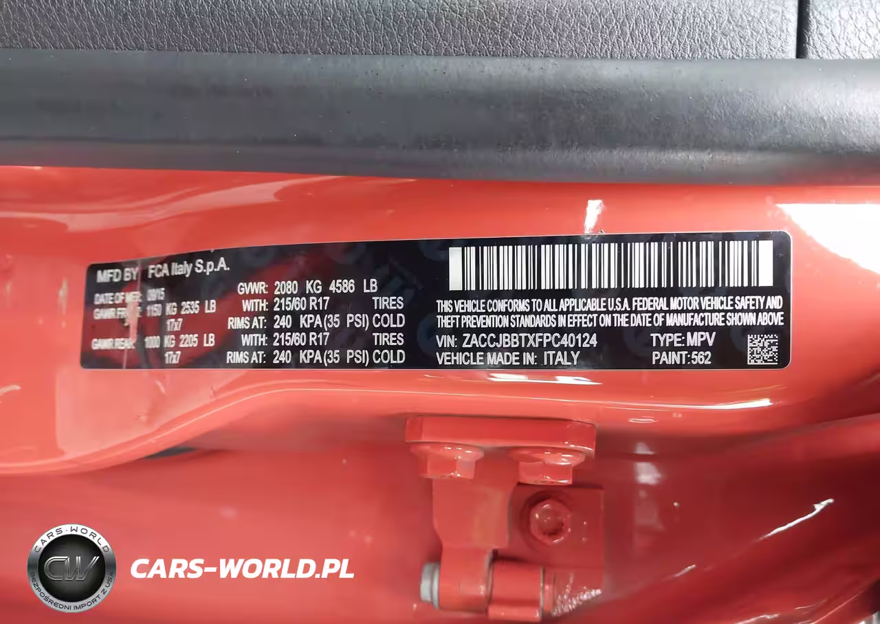 IAAI Nr: I-44150582 VIN: ZACCJBBTXFPC40124 Port: Elizabeth, NJ
