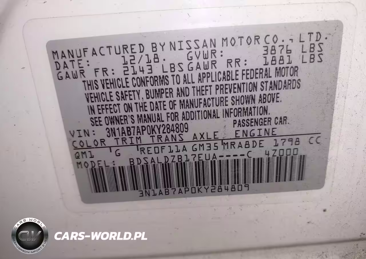 IAAI Nr: I-44151159 VIN: 3N1AB7AP0KY284809 Port: Los Angeles, CA