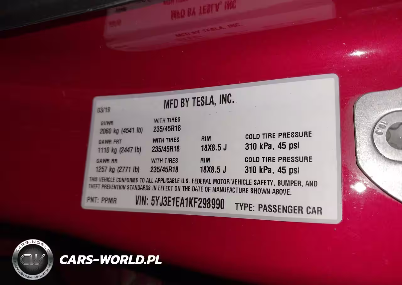 Główne zdjęcie 2019 Tesla Model 3 Long Range-Mid Range-Standard Range-Standard Range Plus