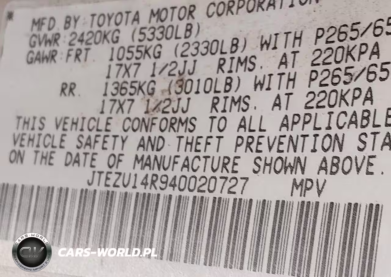 IAAI Nr: I-44157799 VIN: JTEZU14R940020727 Port: Houston, TX