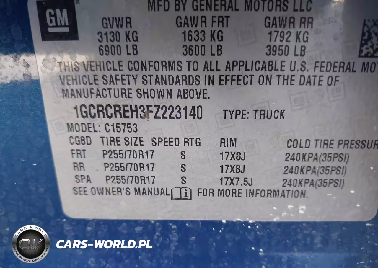 IAAI Nr: I-44158989 VIN: 1GCRCREH3FZ223140 Port: Savannah, GA