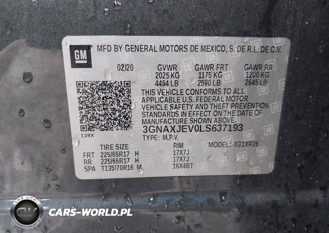 IAAI Nr: I-44159903 VIN: 3GNAXJEV0LS637193 Port: Elizabeth, NJ