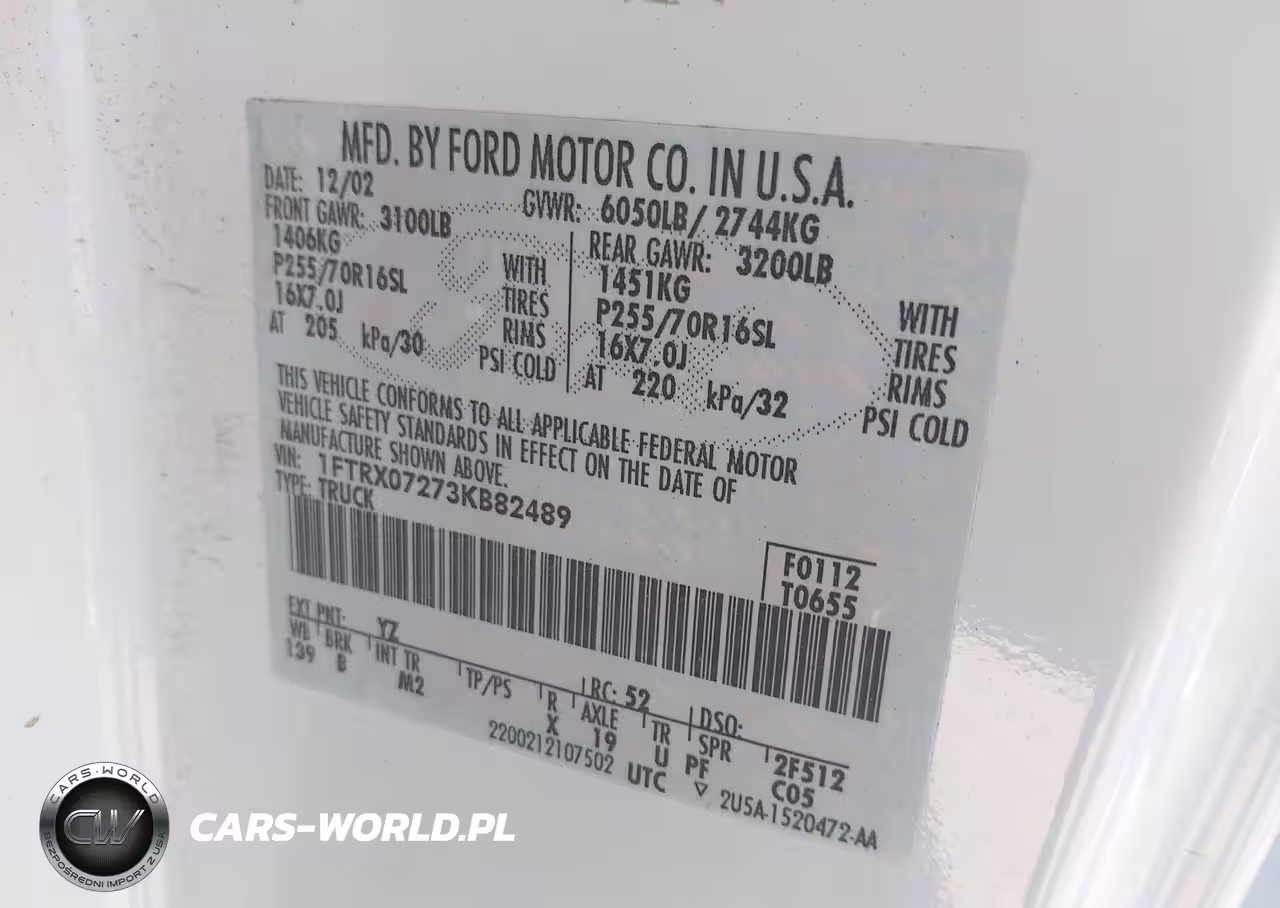 IAAI Nr: I-44170634 VIN: 1FTRX07273KB82489 Port: Houston, TX