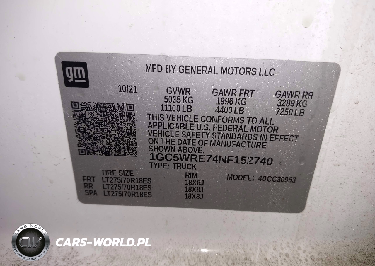 IAAI Nr: I-44171105 VIN: 1GC5WRE74NF152740 Port: Elizabeth, NJ