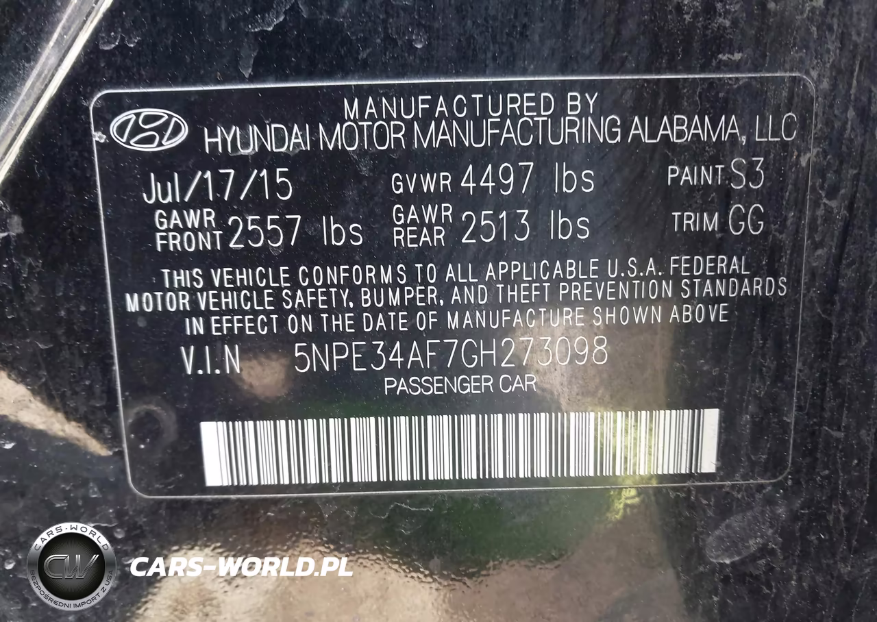 IAAI Nr: I-44172836 VIN: 5NPE34AF7GH273098 Port: Elizabeth, NJ