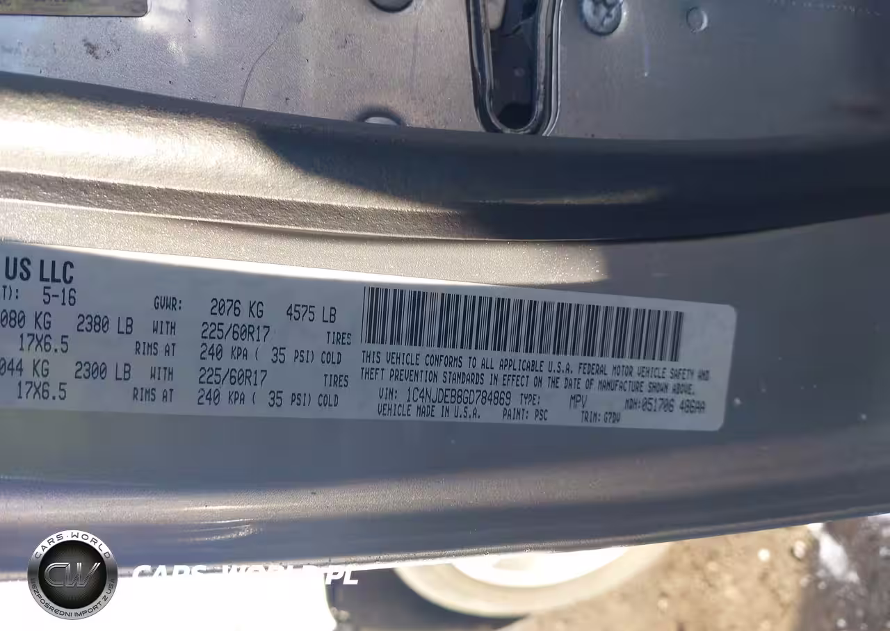 IAAI Nr: I-44174970 VIN: 1C4NJDEB8GD784869 Port: Elizabeth, NJ