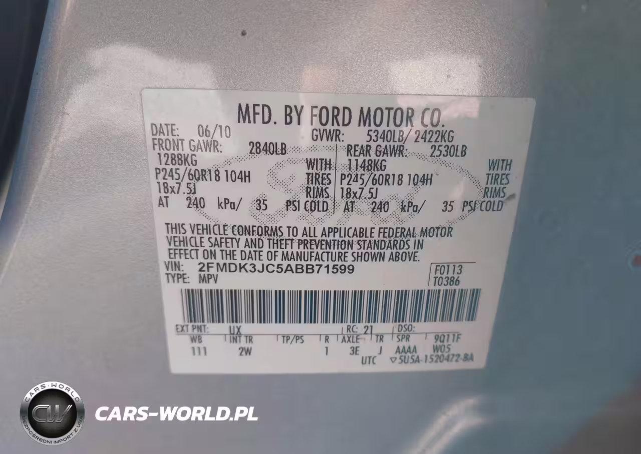 IAAI Nr: I-44177403 VIN: 2FMDK3JC5ABB71599 Port: Savannah, GA