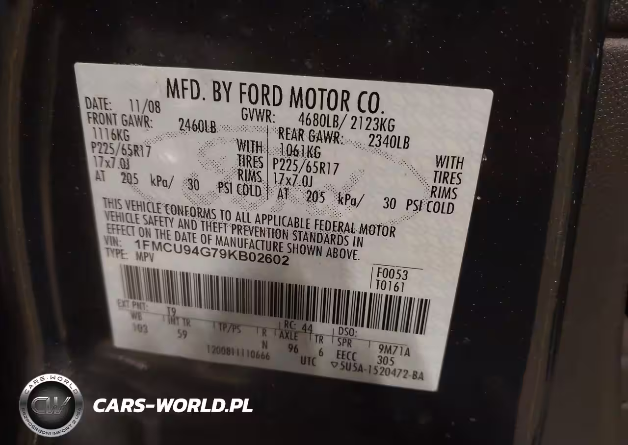 IAAI Nr: I-44177596 VIN: 1FMCU94G79KB02602 Port: Indianapolis, IN